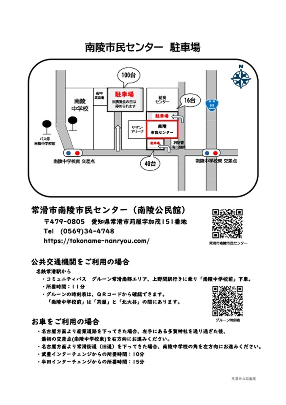 余裕をもってご来館した方は、武道場の駐車場に停めていただきますようよろしくお願い申し上げます。