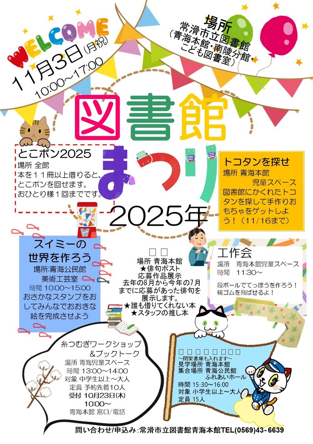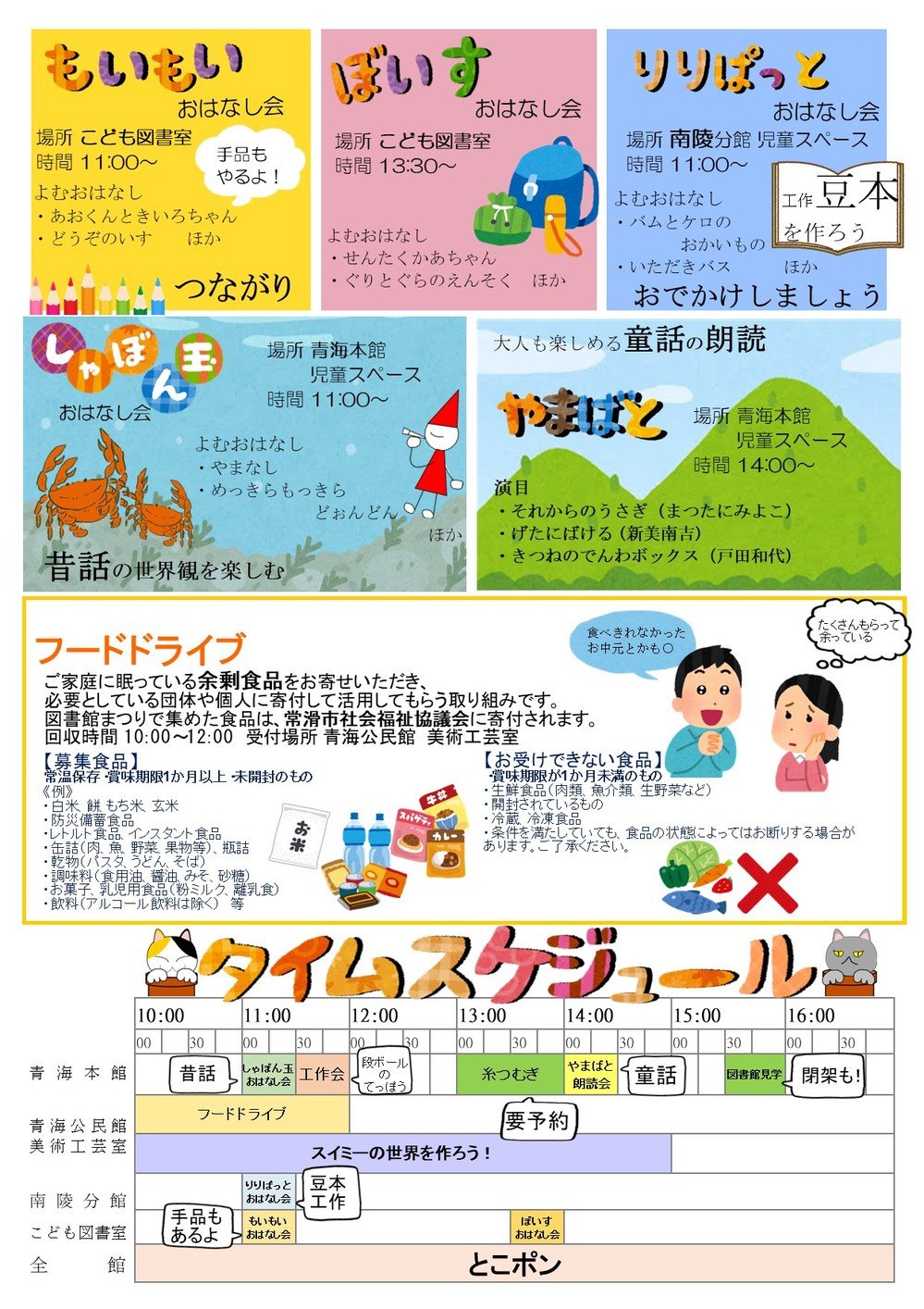 おはなし会や工作会、「トコタンを探せ」など色々な催しがあります!
