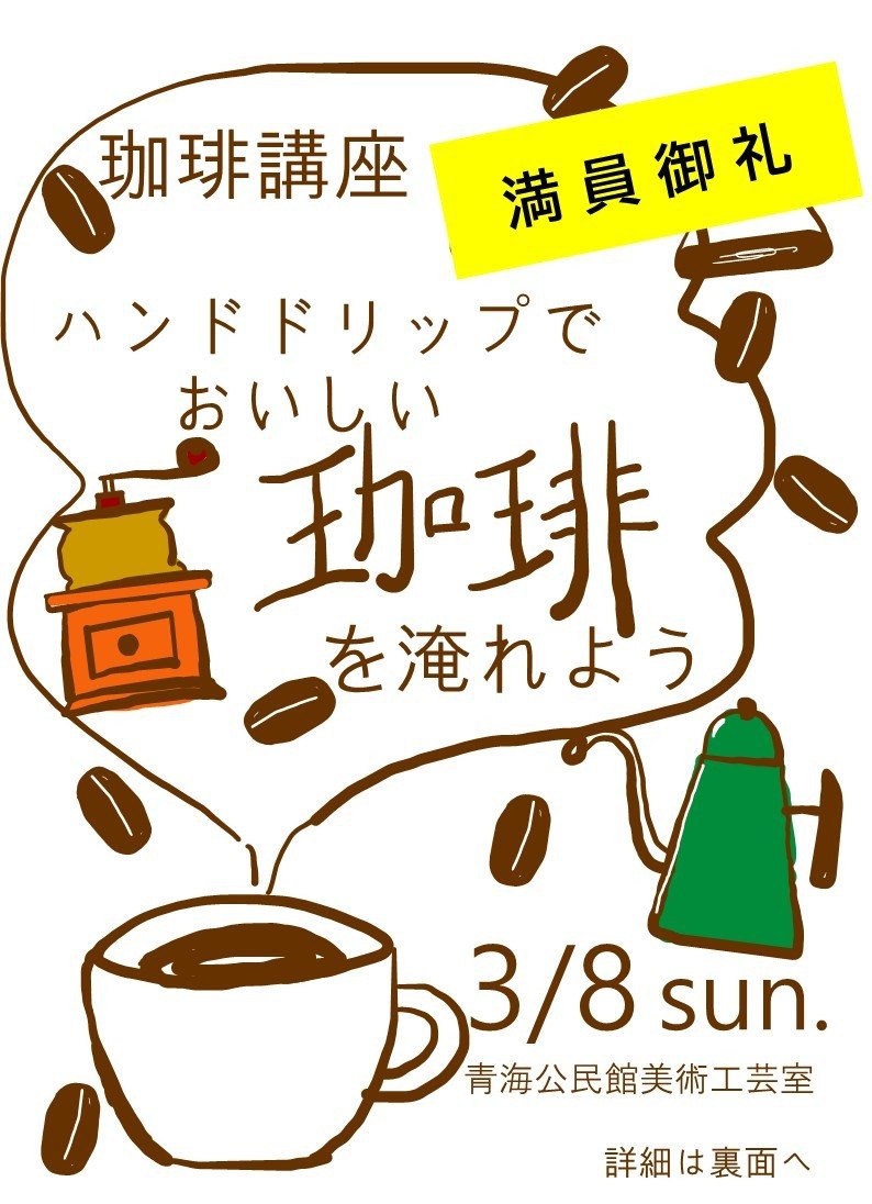 【受付終了】珈琲講座「ハンドドリップでおいしい珈琲を淹れよう」 投稿日: 2026年2月 8日 青海本館 開催期間:2026年3月 8日 定員に達したため、申し込みの受け付けは終了しました。ありがとうございます。 前の記事 次の記事